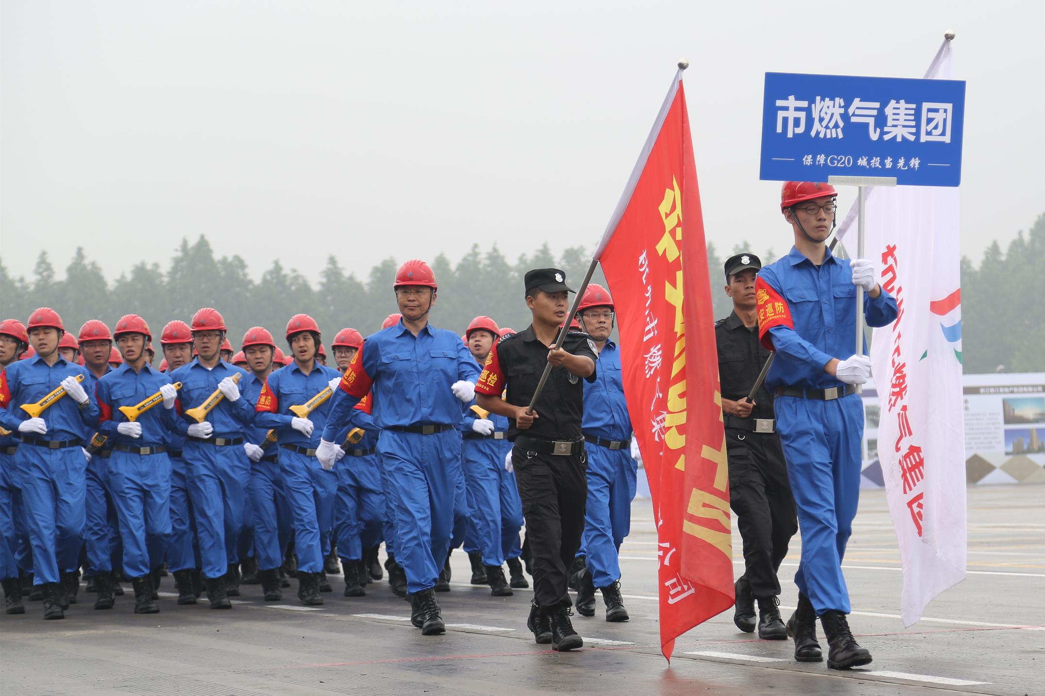 5月27日,G20峰会倒计时100天,在杭州上下全力冲刺峰会保障100天之际,市燃气集团组织41名演习、80名队列人员及5辆应急抢险车辆方阵参加了杭州市城投集团国际峰会保障百日誓师暨平安巡防支队成立大会。