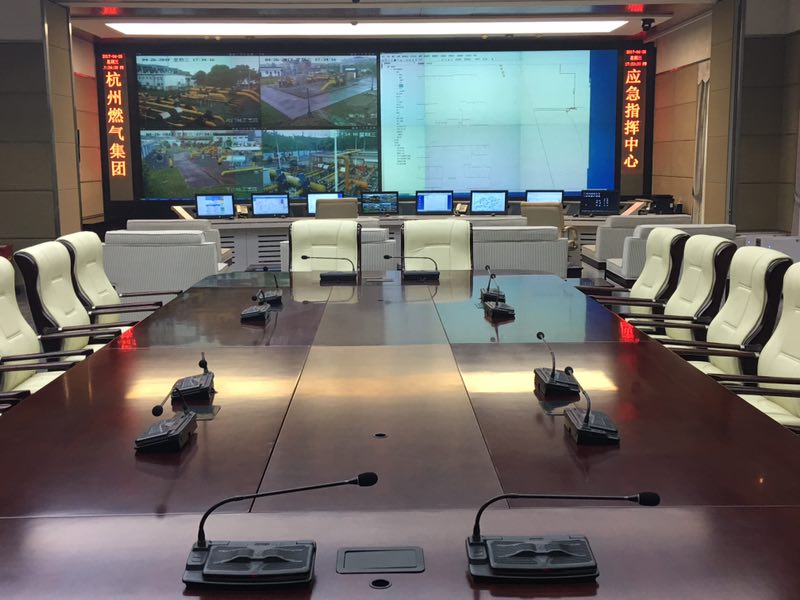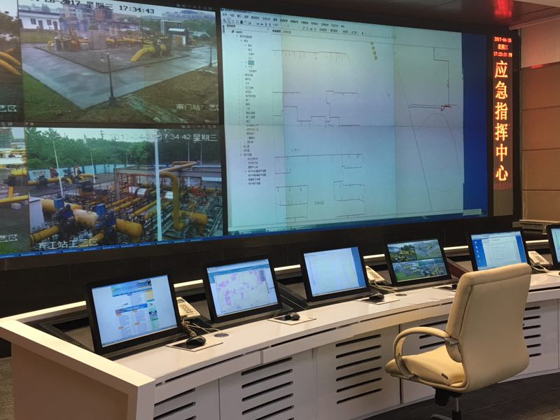 集团应急指挥中心是杭州市燃气应急领导小组指挥部,体现着集团综合实力和“两保一优”重要性,实行24小时专人监控,主要承担集团内重点要害部位的安防监控、生产信息管控、突发事件应急指挥、外部对接协调、运行数据分析等职能,应急指挥中心与市公安局“110”联动指挥中心和市城管委“数字城管”连接,可实现与市应急指挥中心远程视频连接。