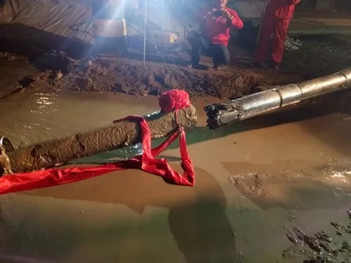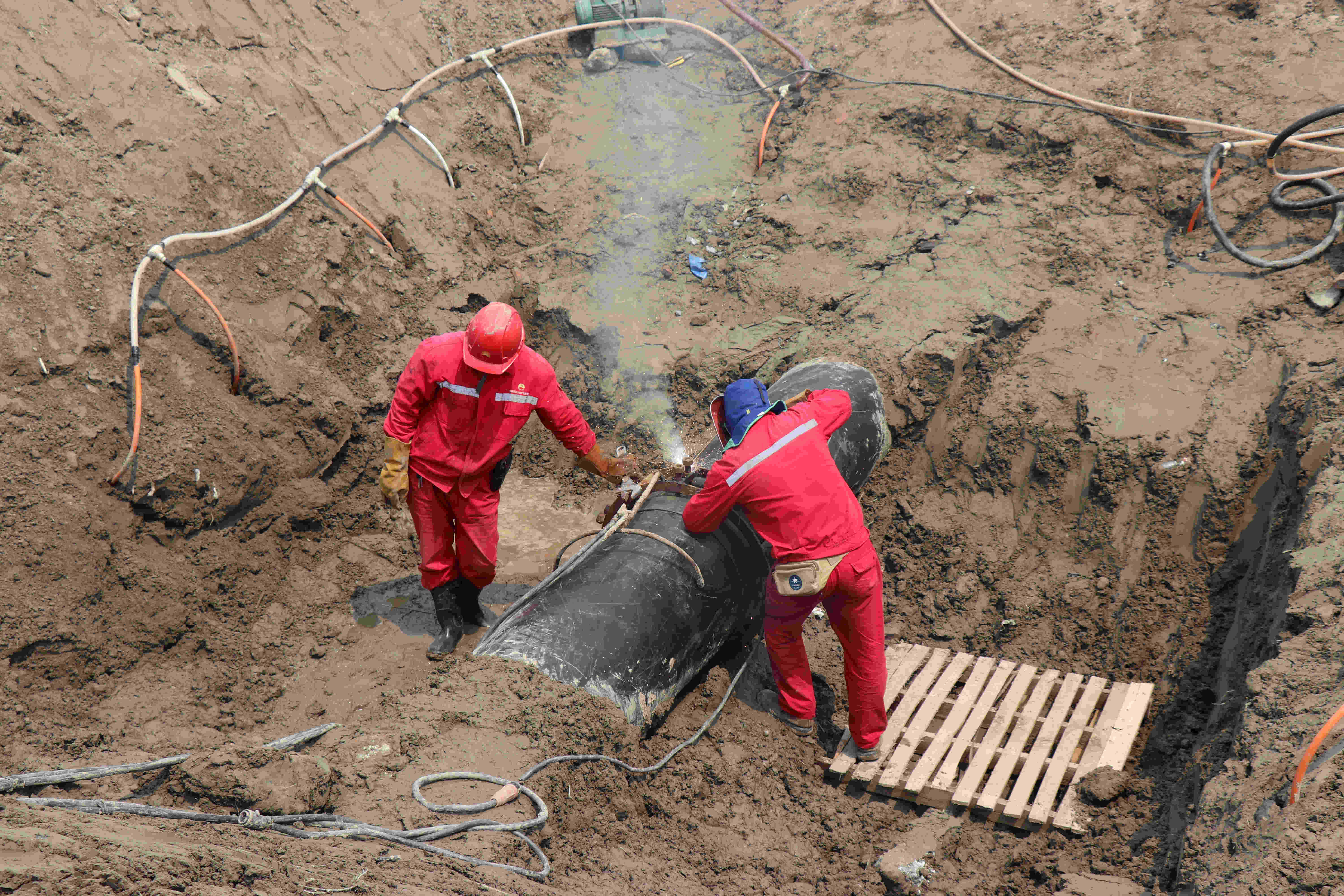 图1:2018年4月26日上午,杭州天然气高压东段跨江工程实施“最后一处连接碰接”,后续将实施氮气置换以及天然气通气工作。