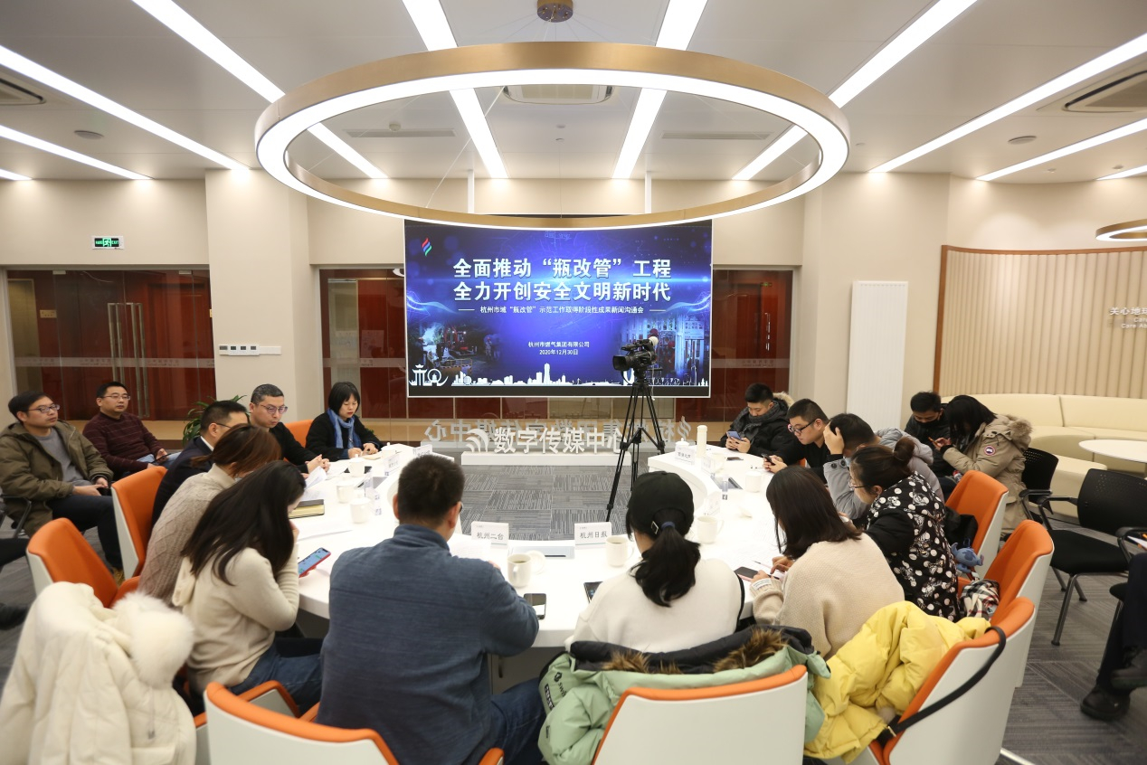 12月30日,“全面推动‘瓶改管’工程 全力开创安全文明新时代——杭州市域‘瓶改管’示范工作取得阶段性成果”新闻沟通会在电竞博彩网 数字传媒中心召开,集团建设发展部、综合管理部、杭天公司、钱江公司相关负责人参加。浙江卫视、浙江公共新闻频道、杭州2台、杭州日报、钱江晚报、城报、浙江之声、杭州网、西湖之声等9家省市媒体现场报道。