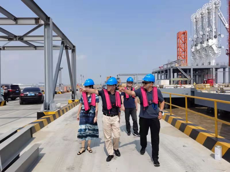 叶总一行参观了嘉兴储运站码头工程施工现场和LNG库区,听取项目基本情况汇报并了解建设进度、投产调试情况和后续运营模式。