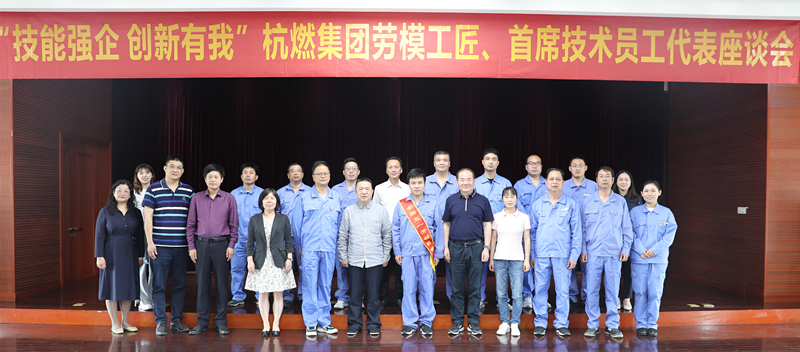 芦俊为刚刚载誉归来的全国五一劳动奖章获得者钟奇授奖、为浙江建设工匠获得者殷一珍献花以示祝贺,谈及每年的“五一”座谈会都是开心的日子,是总结和收获的日子,是承前启后、继往开来、再出发的日子,表示感同身受。对“服务创新的排头兵,新业拓展的开荒牛”的杭天服务发展公司、“技能长十分,保障增一分”的钟奇、“殷氏一珍、杭燃一宝、巾帼一旗”的殷一珍、“7年6徒弟,杭燃来师傅”的来佳杰给予高度肯定和赞扬。最后围绕“人人可为工匠”谈及3点想法:一是进一步肯定成绩,鼓舞信心。二是进一步弘扬精神,坚定信心。三是进一步深化改革,坚持决心。