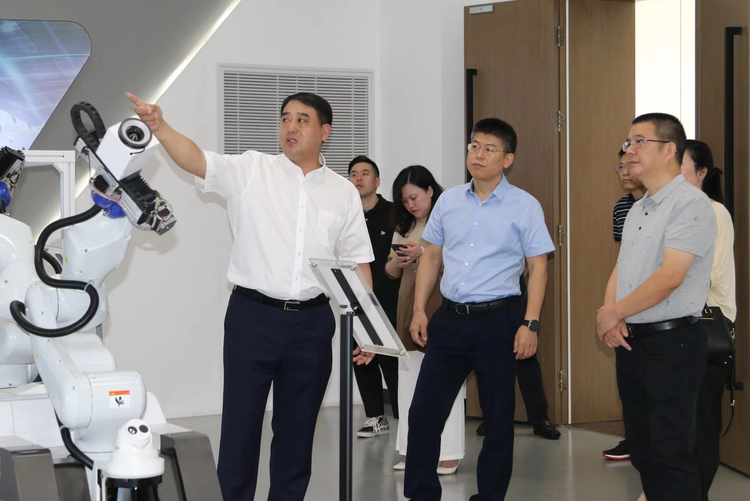 走访人员一行参观了申昊科技展示中心、省重点实验室,在会议室听取了申昊科技在电竞博彩网、发展历程、核心技术、产品体系等方面的详细介绍,重点了解了申昊科技在数字化技术应用上取得的成果,并对双方合作前景开展深入交流和广泛探讨。