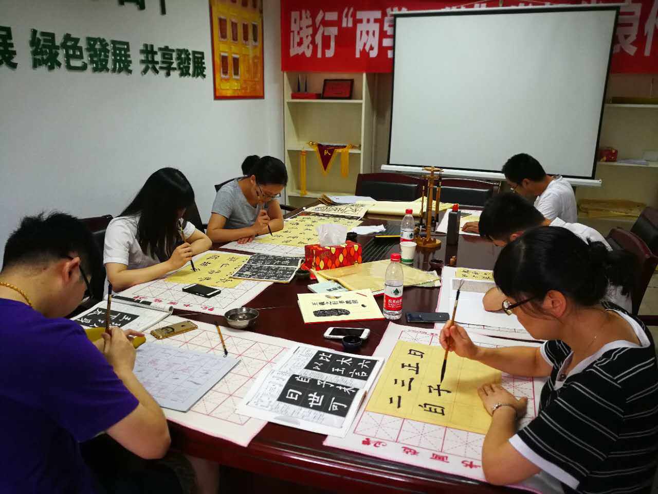 近日,杭天滨江分公司利用午休时间在会议室开设了书法临时活动室,为员工配备了笔墨、纸、“神奇水写布”等专门书法练字工具和书籍。此举,既丰富了员工的文化生活,同时提高了员工的艺术修养。