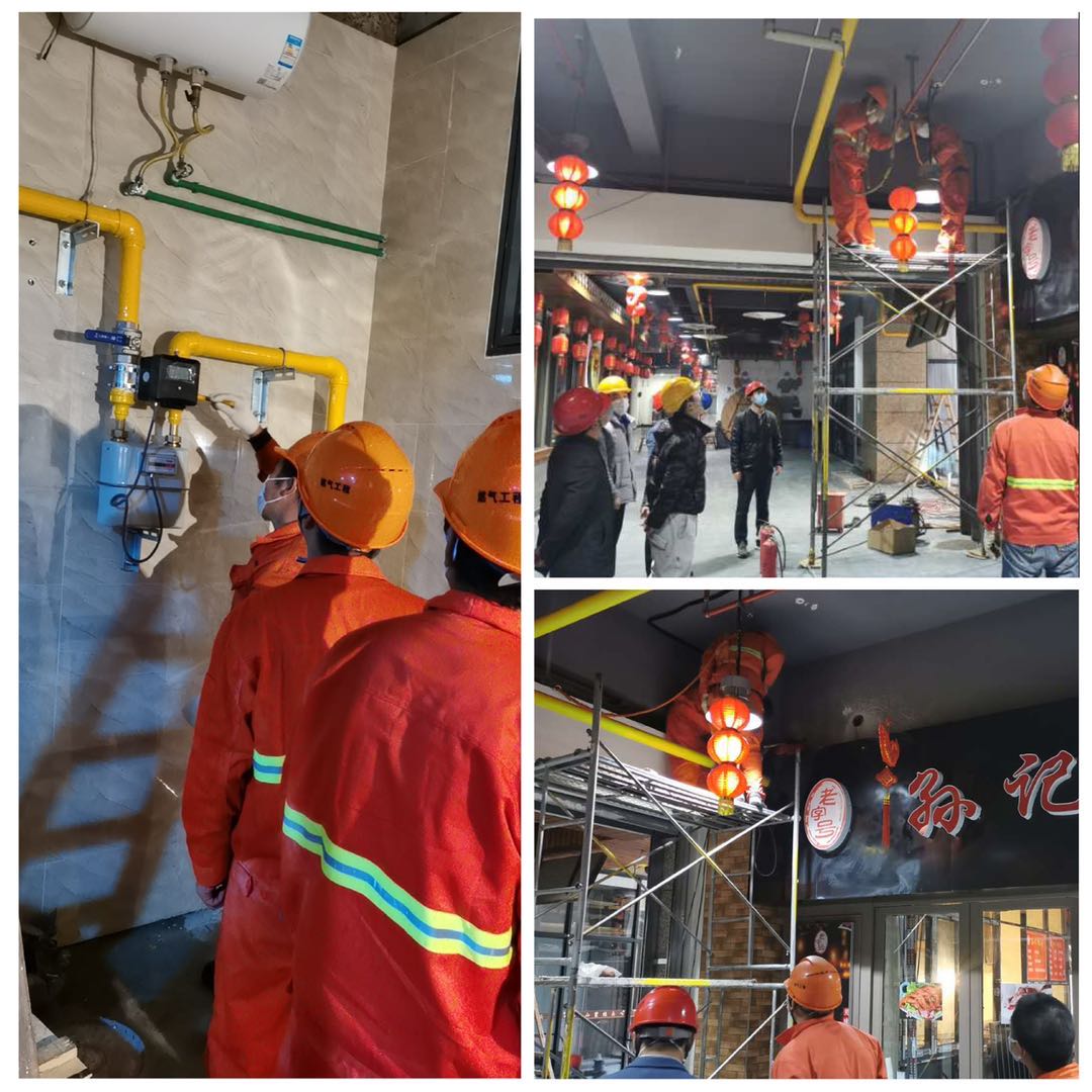 2月15日上午,竺恩惠、客户经理、工程公司工程施工人员和服务发展工作人员在做好疫情个人防护后,按约定时间来到现场,在工程公司的大力配合下加强检查和整改,经过3个小时的连续奋战,按照既定方案在保证施工质量的前提下,盯住施工质量和进度不放松,按期完成孙记鸭头管燃气工程开三通碰接作业。后续,待业主完成厨房通风等问题整改后再予以点火通气,同时,与施工涉及停气的20家餐饮商户逐一对接,为他们提供一次安全检查,确保所有商户的安全稳定用气。
