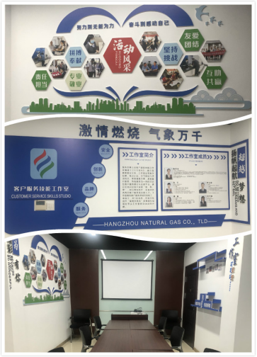 该技能工作室建立在朝晖营业厅内,以杭州市“最美办事员”阮佳的名字命名,从整体布局到内饰设计再到成品展示皆由天目绿色能源综合服务站员工章怡和综合管理部员工施燕云完成,工作室的成立便是服务发展公司员工发挥特长、展现艺术技能的一个缩影。工作室设有教学投屏、培训计划、学习园地与活动风采、荣誉墙展示等,是集窗口服务、热线服务为一体的综合性客户服务理论与实操平台。