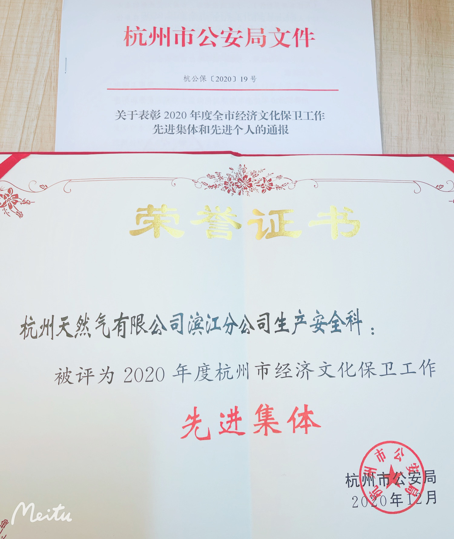 近日,市公安局下发了《关于表彰2020年度全市经济文化保卫工作先进集体和先进个人的通报》,杭天滨江分公司安全生产科荣获2020年度全市经济文化保卫工作先进集体。