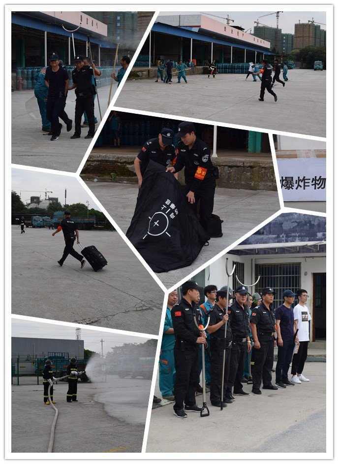 演练共耗时5分钟,演练过程中,保安、生产管理部反恐应急队伍、消防灭火人员均按照各自职责分工实施了反恐消防处置。