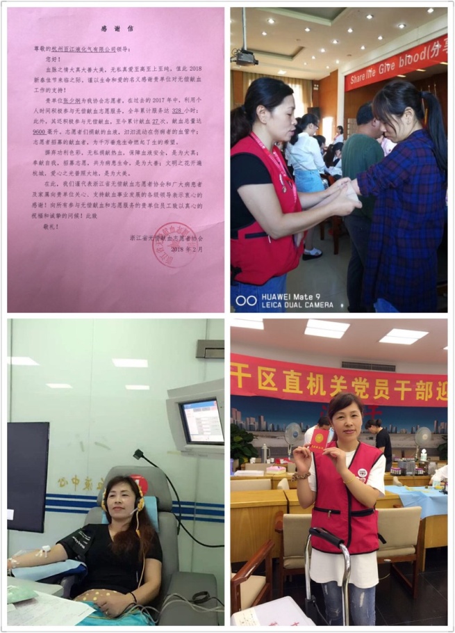 2月23日,杭州百江收到一封特殊的感谢信,信件来自浙江省无偿献血志愿者协会,感谢百江公司员工张少炯,在过去的2017年中参与无偿献血和志愿者服务工作。张少炯2017年全年累计志愿者服务达328个小时,此外其还积极参与无偿献血27次,累计献血量已达9600毫升。