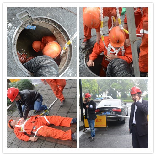 11月17日上午,工程公司在之江路与化仙桥路口燃气阀门井处开展了一次井下作业人员窒息应急救援演练。