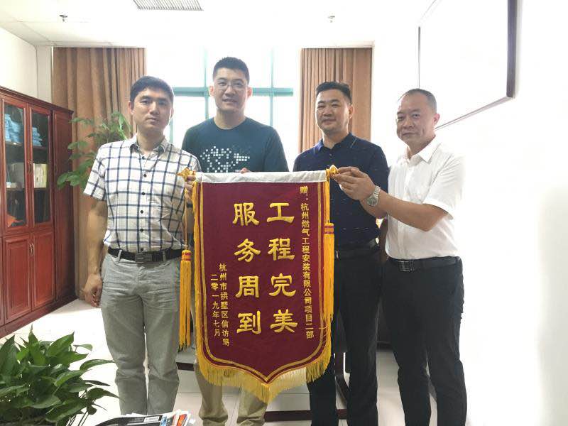 7月4日上午,拱墅区信访局接访科科长王利军和信访接待大厅主任王细贵带着“工程完美服务周到”的锦旗专程来到工程公司表示感谢,对工程公司项目二部专业、细致、高效的施工服务给予了高度的赞扬。