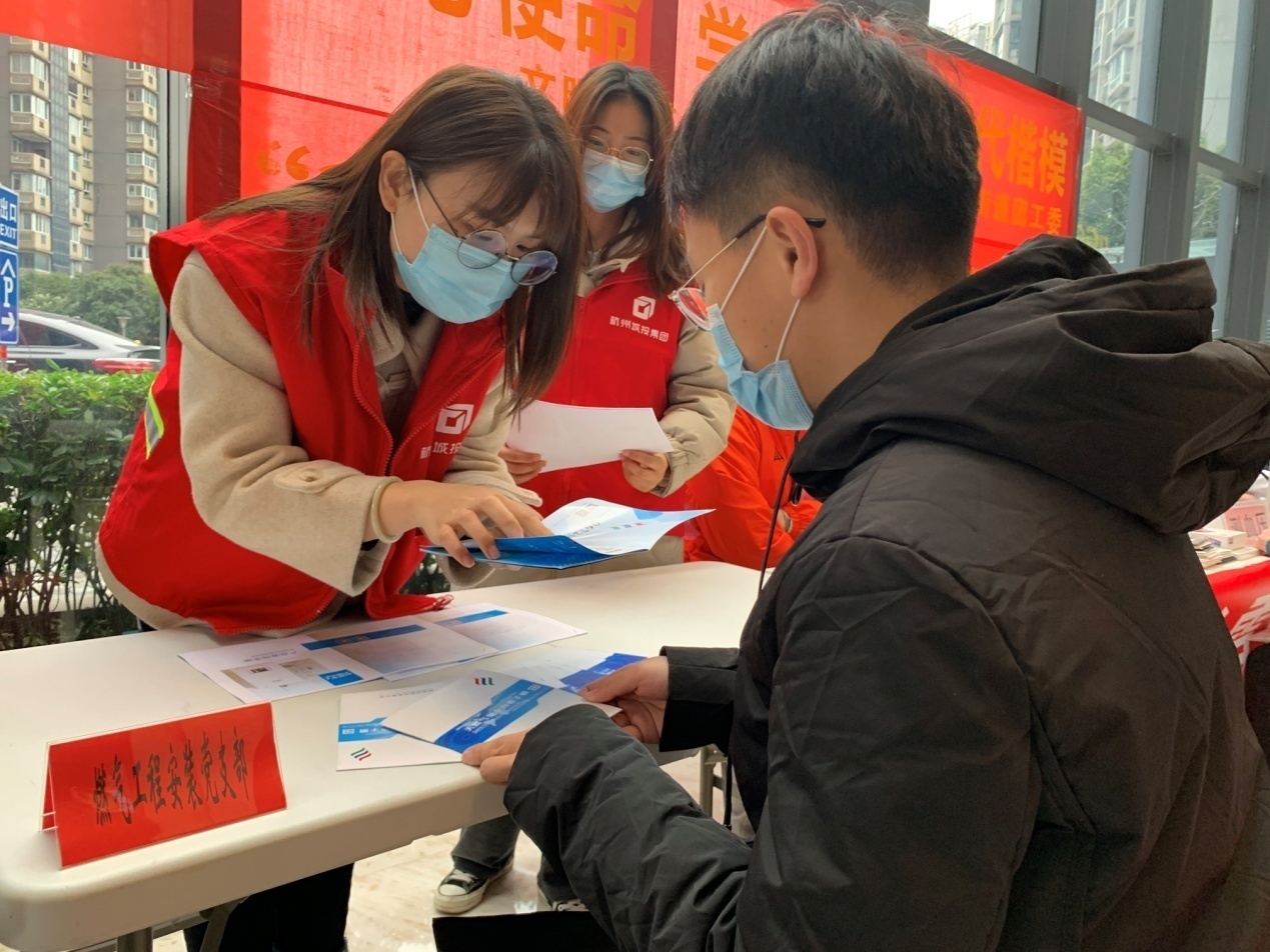 全资子公司、民生保障单位以及下城区文晖街道属地企业,工程公司积极响应下城区文晖街道江南楼宇社区党委、文晖街道团工委开展的“观党史牢记使命初心,学雷锋争做时代楷模”学雷锋日主题活动。3月3日中午,公司6名党团员、青年员工志愿者在做好疫情防控及自身保护的情况下,带着天然气安全宣传手册和杭燃优家产品介绍册,来到野风现代中心北楼一楼大厅,为楼宇企业员工分发手册,解答日常生活中遇到的燃气安全小知识并宣传推广杭燃优家系列产品,利用午休时间向楼宇内的员工提供便民志愿服务。服务之余,志愿者们还参观了活动现场设立的中国共产党历届全国代表大会的展板,学习了党史内容。