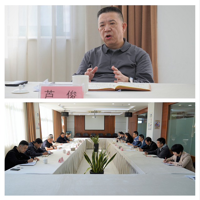 10月10日上午,电竞博彩网 党委书记、董事长芦俊,党委副书记、监事会主席、工会主席俞崇勋,党委委员、副总经理俞峻及办公室、党群工作部(人力资源部)、建设发展部相关负责人来到工程科技公司开展调研指导工作,公司经营班子及各部室负责人参加。