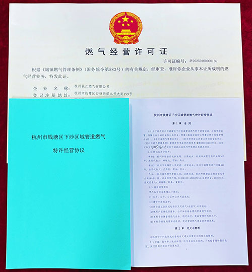 伴随着下沙区域管道燃气特许经营协议的签订,钱江公司于2025年7月28日正式获得燃气经营许可证,圆满解决了困扰企业多年的经营权问题,标志着公司在钱塘区下沙区域天然气领域的经营全面合规化,为企业未来发展铺平了道路。