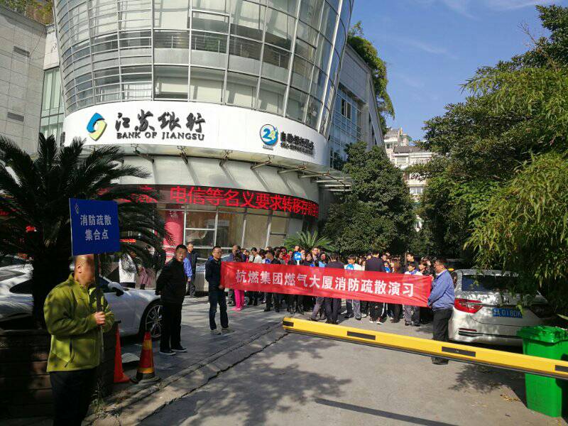 “燃气大厦2017年下半年消防应急演练现在开始……”11月24日10:30分,随着演练总指挥、燃气大厦物管部主任沈梁华一声指令,燃气大厦“119消防月”疏散演练拉开帷幕。