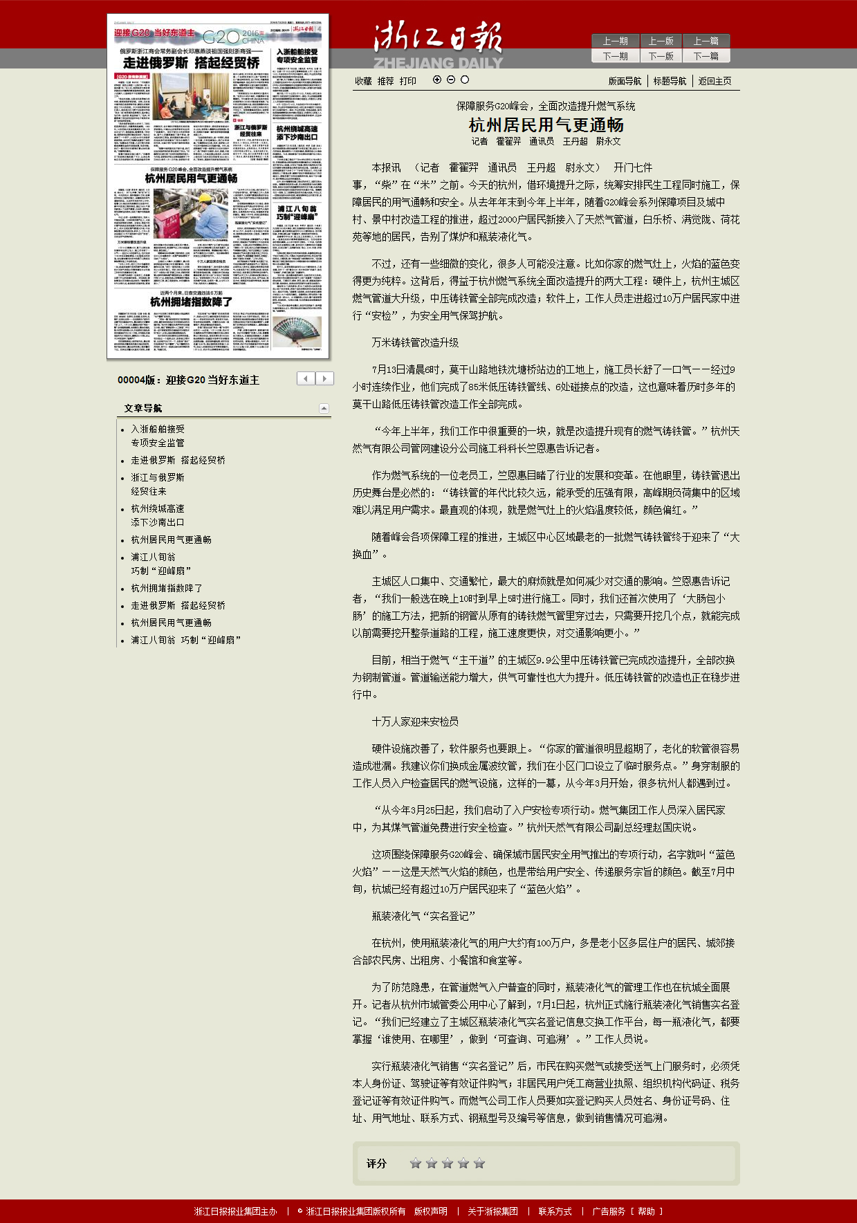 保障服务G20峰会,全面改造提升燃气系统,杭州居民用气更通畅
