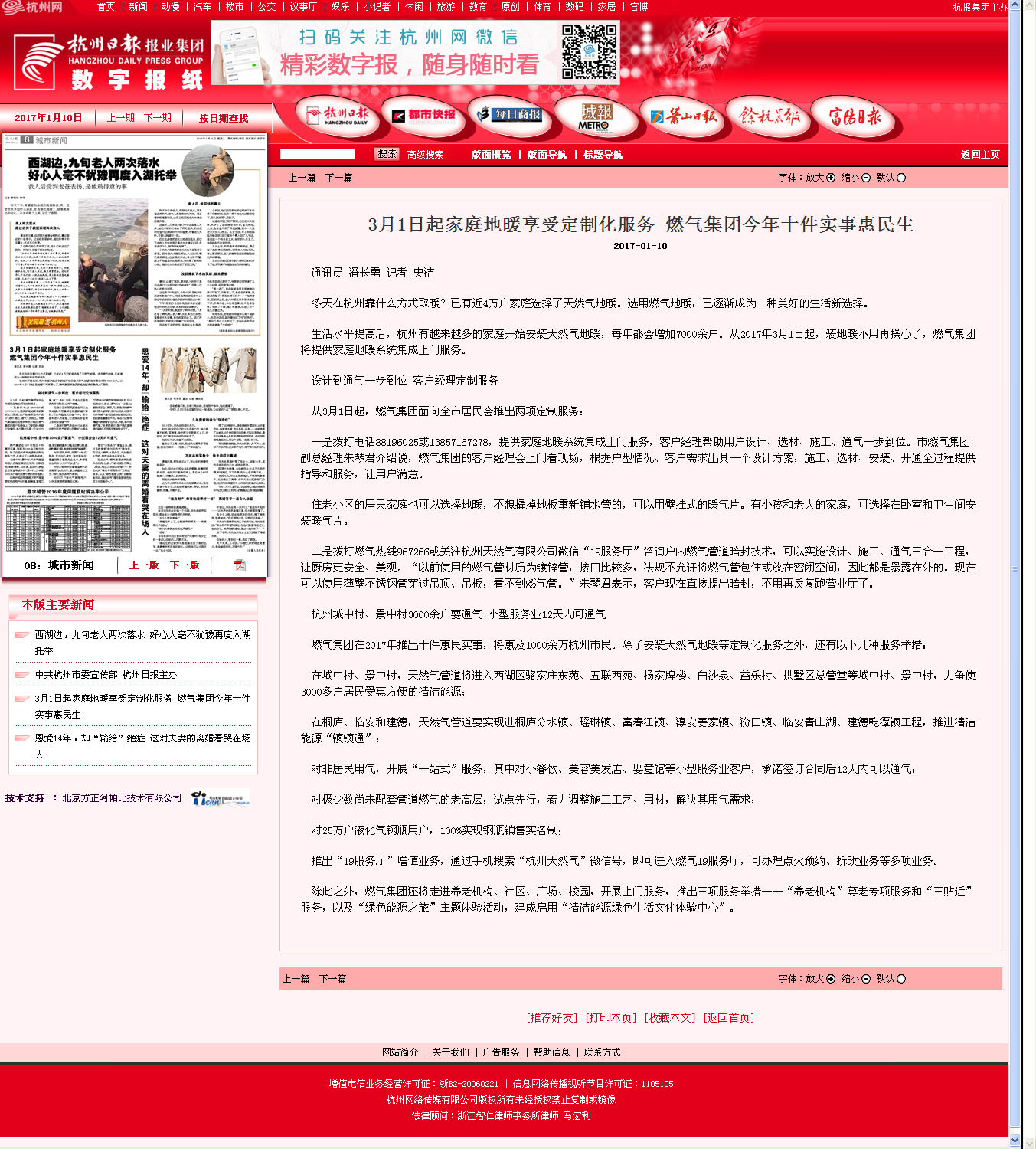 燃气集团在2017年推出十件惠民实事,将惠及1000余万杭州市民。除了安装天然气地暖等定制化服务之外,还有以下几种服务举措: