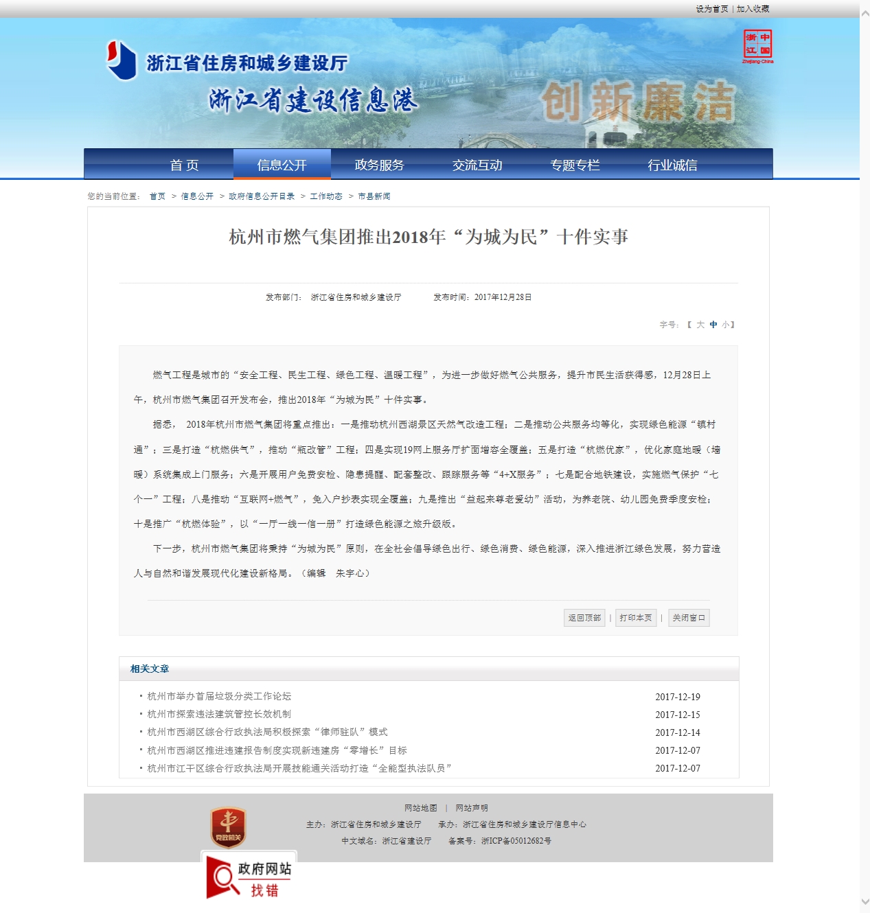 燃气工程是城市的“安全工程、民生工程、绿色工程、温暖工程”,为进一步做好燃气公共服务,提升市民生活获得感,12月28日上午,杭州市燃气集团召开发布会,推出2018年“为城为民”十件实事。