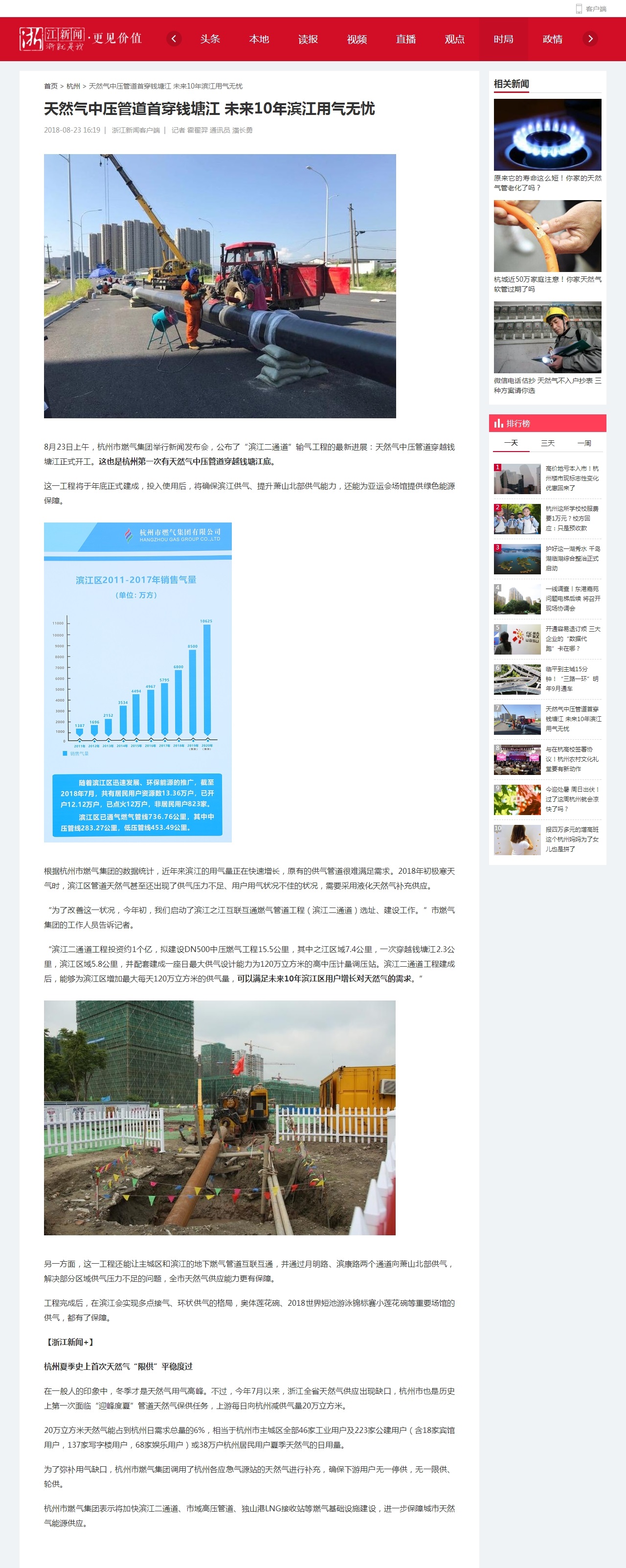 8月23日上午,杭州市燃气集团举行新闻发布会,公布了“滨江二通道”输气工程的最新进展:天然气中压管道穿越钱塘江正式开工。这也是杭州第一次有天然气中压管道穿越钱塘江底。