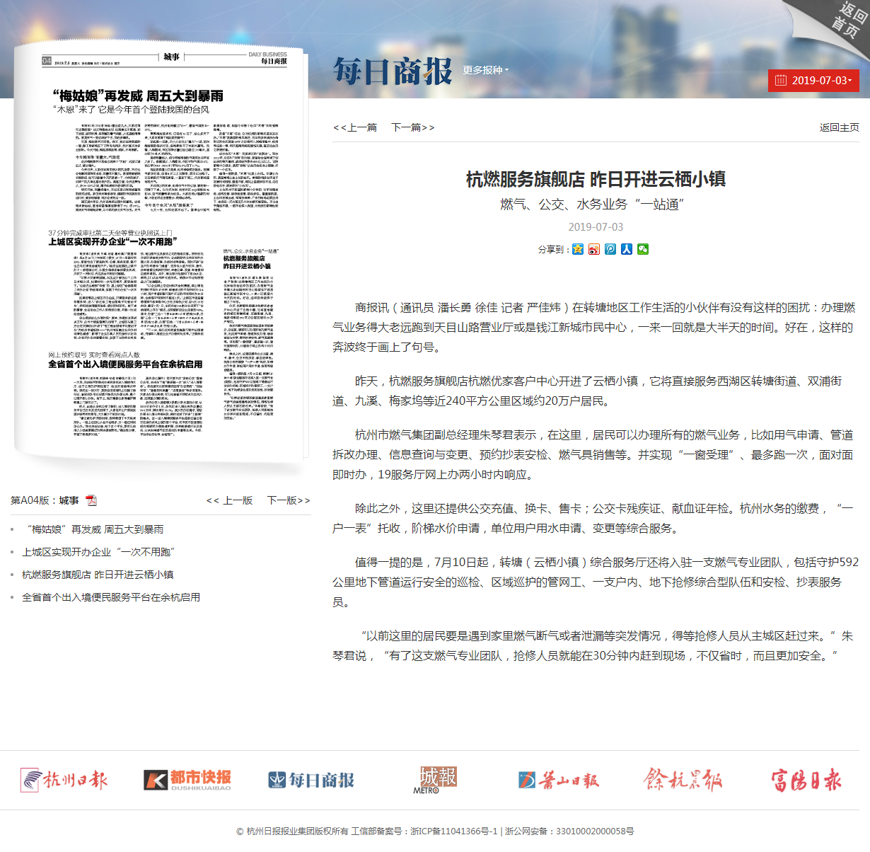 昨天,杭燃服务旗舰店杭燃优家客户中心开进了云栖小镇,它将直接服务西湖区转塘街道、双浦街道、九溪、梅家坞等近240平方公里区域约20万户居民。