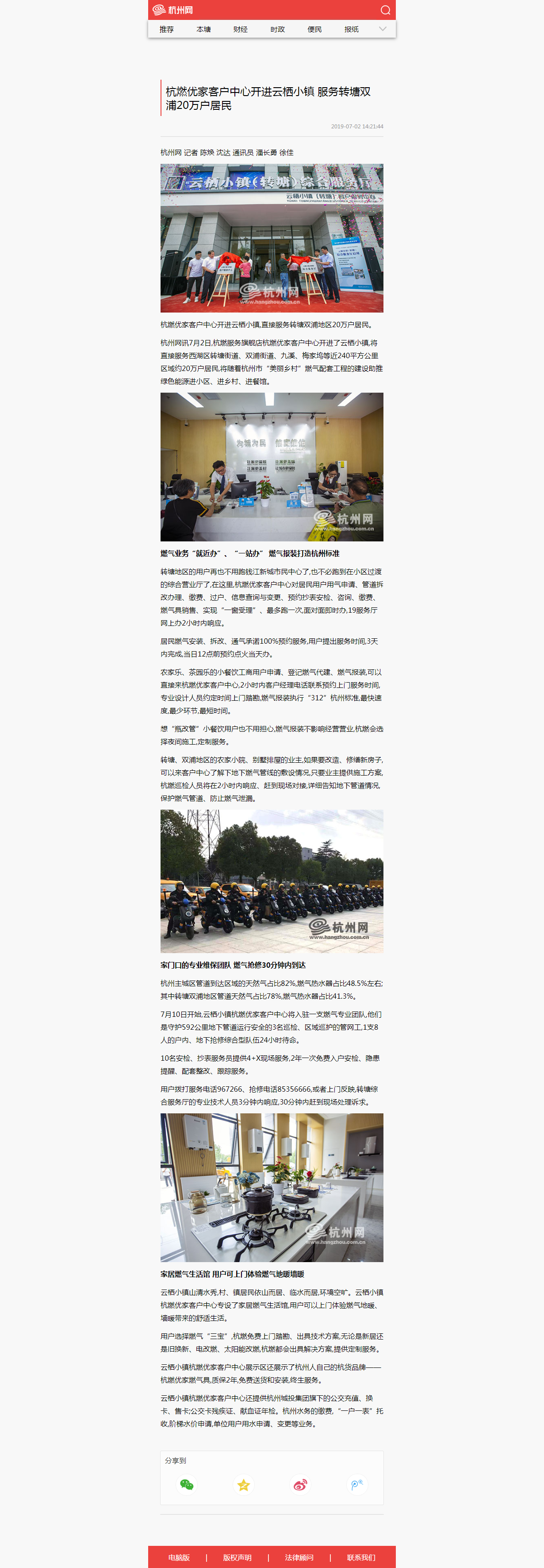 【杭州网】杭燃优家客户中心开进云栖小镇 服务转塘双浦20万户居民