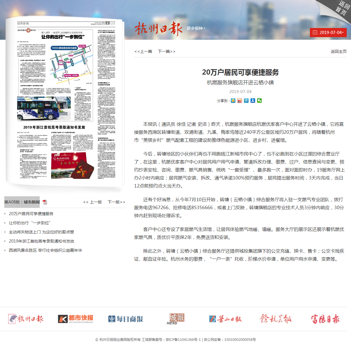 还有个好消息,从今年7月10日开始,转塘(云栖小镇)综合服务厅将入驻一支燃气专业团队,拨打服务电话967266、抢修电话85356666,或者上门反映,转塘旗舰店的专业技术人员3分钟内响应,30分钟内赶到现场处理诉求。