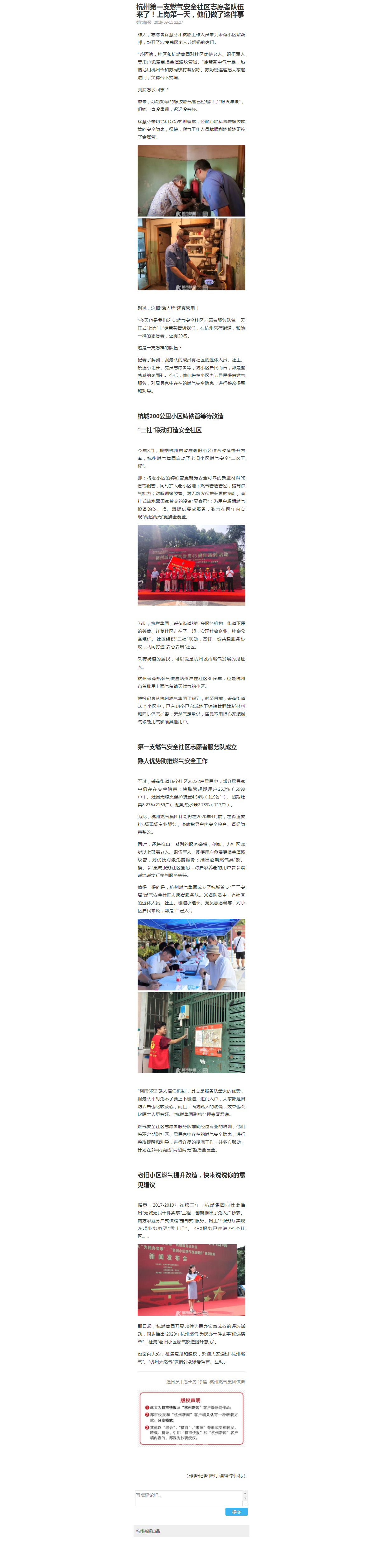 值得一提的是,杭州燃气集团成立了杭城首支“三三安居”燃气安全社区志愿者服务队。30名队员中,有社区的退休人员、社工、楼道小组长、党员志愿者等,对小区居民来说,都是“自己人”。