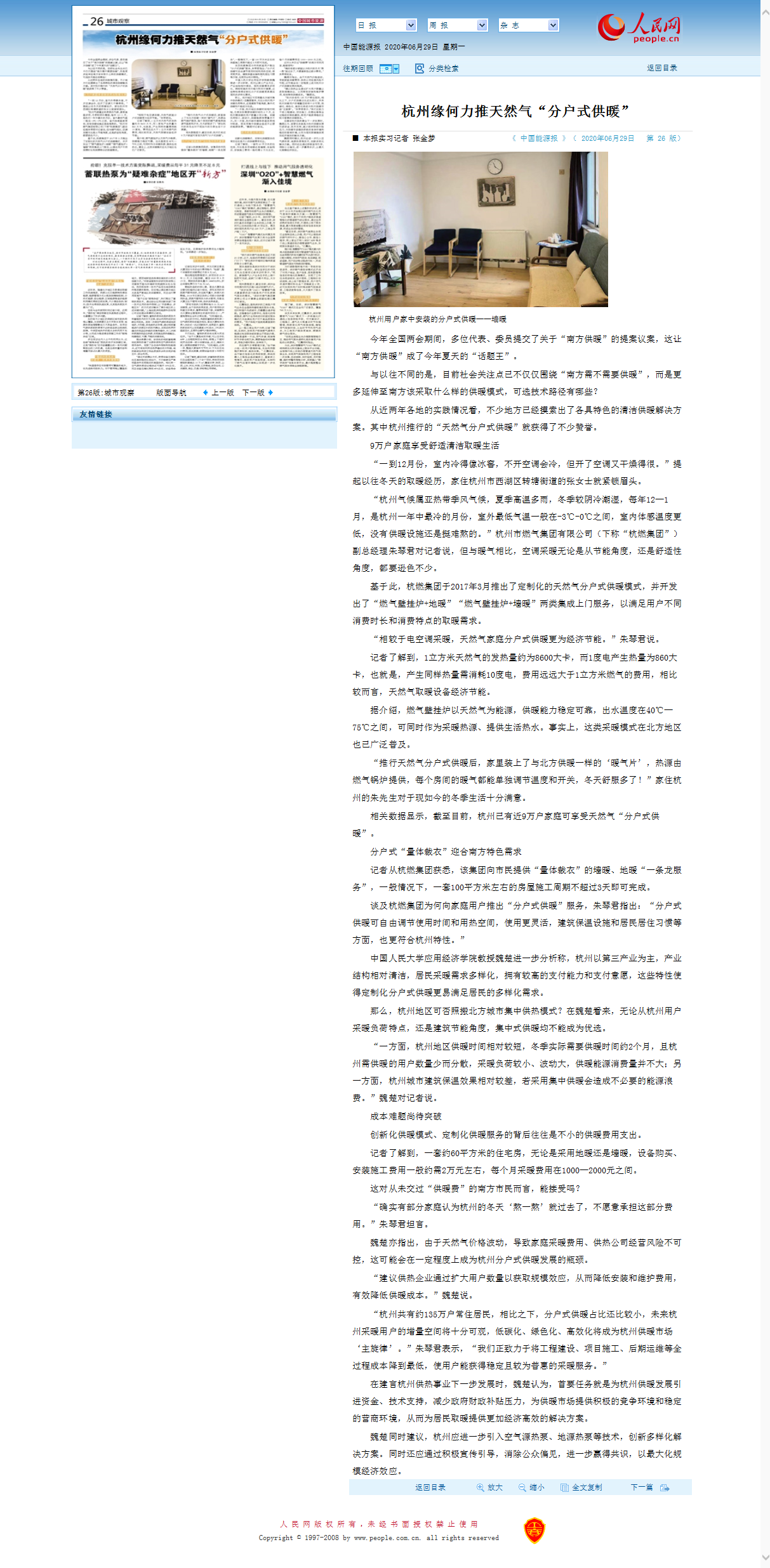 “推行天然气分户式供暖后,家里装上了与北方供暖一样的‘暖气片’,热源由燃气锅炉提供,每个房间的暖气都能单独调节温度和开关,冬天舒服多了!”家住杭州的朱先生对于现如今的冬季生活十分满意。