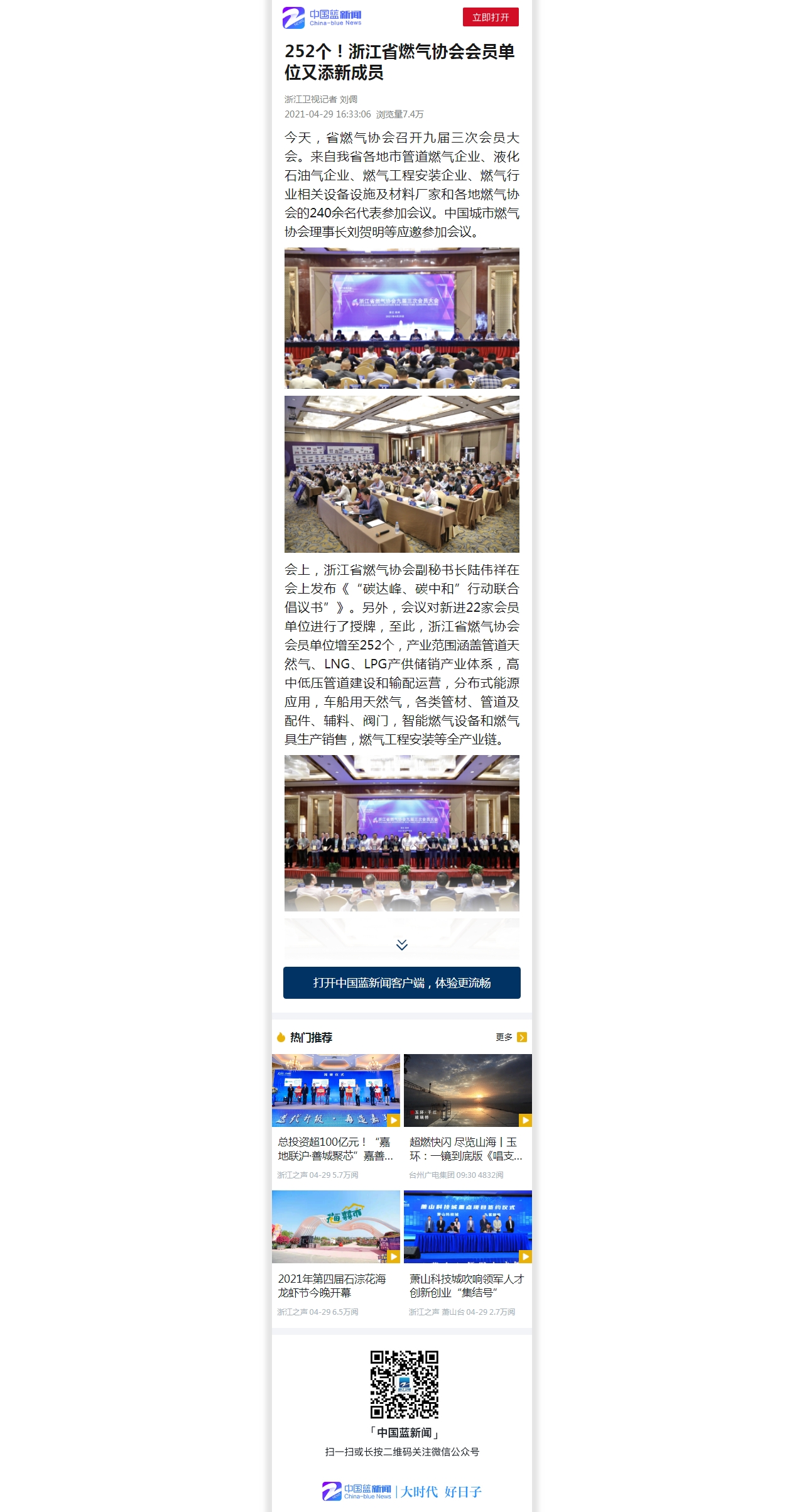会上,浙江省燃气协会副秘书长陆伟祥在会上发布《“碳达峰、碳中和”行动联合倡议书”》。另外,会议对新进22家会员单位进行了授牌,至此,浙江省燃气协会会员单位增至252个,产业范围涵盖管道天然气、LNG、LPG产供储销产业体系,高中低压管道建设和输配运营,分布式能源应用,车船用天然气,各类管材、管道及配件、辅料、阀门,智能燃气设备和燃气具生产销售,燃气工程安装等全产业链。