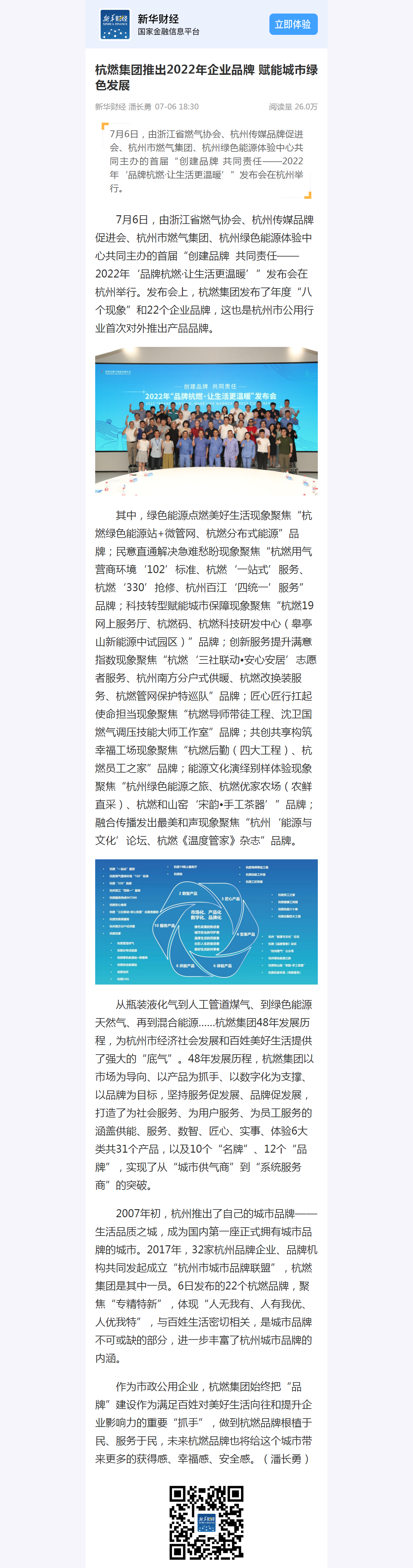 7月6日,由浙江省燃气协会、杭州传媒品牌促进会、杭州市燃气集团、杭州绿色能源体验中心共同主办的首届“创建品牌 共同责任——2022年‘品牌杭燃·让生活更温暖’”发布会在杭州举行。发布会上,电竞博彩网 发布了年度“八个现象”和22个企业品牌,这也是杭州市公用行业首次对外推出产品品牌。