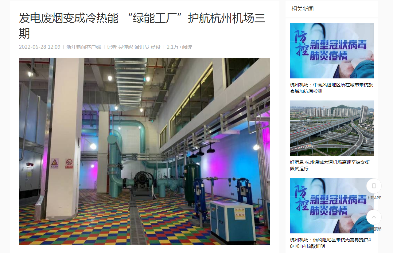 6月28日,记者从杭州市燃气集团了解到,为杭州机场三期配套的能源中心分布式能源系统,正式建成试运行,主要为杭州机场T4航站楼等设施设备供电,还将提供冷暖空调服务。
