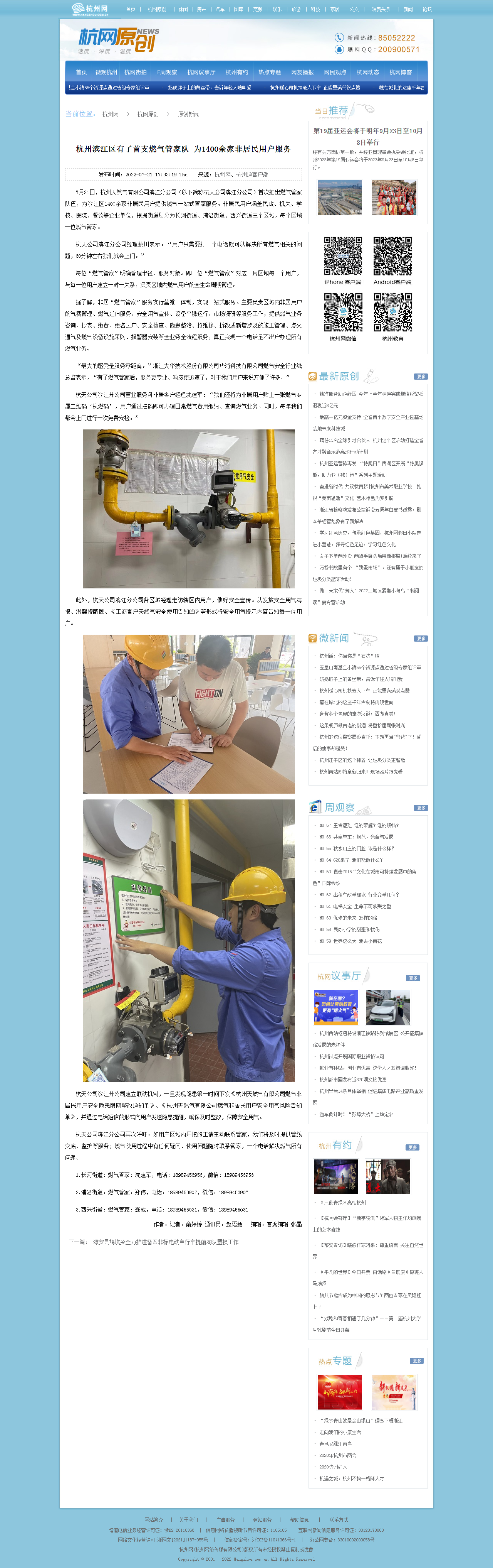 7月21日,杭州天然气有限公司滨江分公司(以下简称杭天公司滨江分公司)首次推出燃气管家队伍,为滨江区1400余家非居民用户提供燃气一站式管家服务。非居民用户涵盖民政、机关、学校、医院、餐饮等企业单位,根据街道划分为长河街道、浦沿街道、西兴街道三个区域,每个区域一位燃气管家。