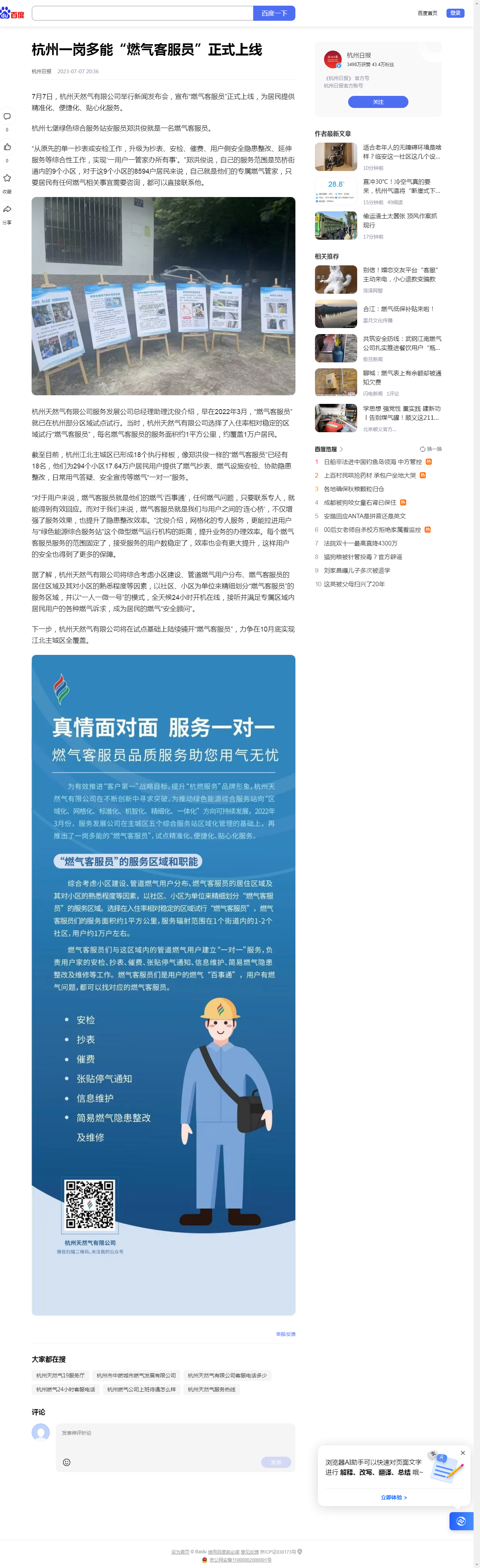 7月7日,杭州天然气有限公司举行新闻发布会,宣布“燃气客服员”正式上线,为居民提供精准化、便捷化、贴心化服务。