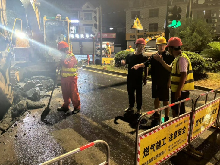 为了不影响G329的建设进度和用户正常用气,杭临燃气统筹规划,合理安排施工时间,利用用户放假停气的当天对燃气管道进行安装、改造、置换,顺利完成点火通气,并在第二天对老厨房进行拆除,顺利配合G329施工进度。
