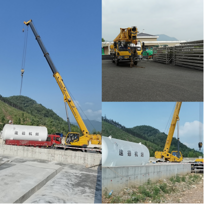 9月4日,满载装卸车撬块、增压器的大型货车陆续到达李家镇绿色能源站现场,在进行一系列调试后11时左右伴随着吊车巨大的轰鸣声,槽罐及调压装置开始吊装。