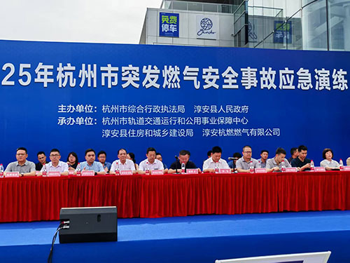 近日,由杭州市综合行政执法局、淳安县人民政府主办,杭州市轨道交通运行和公用事业保障中心、淳安县住房和城乡建设局、淳安电竞博彩网有限公司承办的2025年杭州市突发燃气安全事故应急演练,在淳安县青溪银泰城和界首亚运场站举行(亚运场站以直播形式联动主会场)。杭州市综合行政执法局二级巡视员谢胜才任总指挥,淳安杭燃董事长高立鸿任副总指挥,总经理孙焕锐和习理员蓝晨映任现场指挥,淳安县政府副县长余飞,杭州市各区县住建部门和淳安县各乡镇部门负责人、燃气同行及群众共200余人现场观摩。电竞博彩网 党委委员、副总经理袁麟到现场观摩指导。