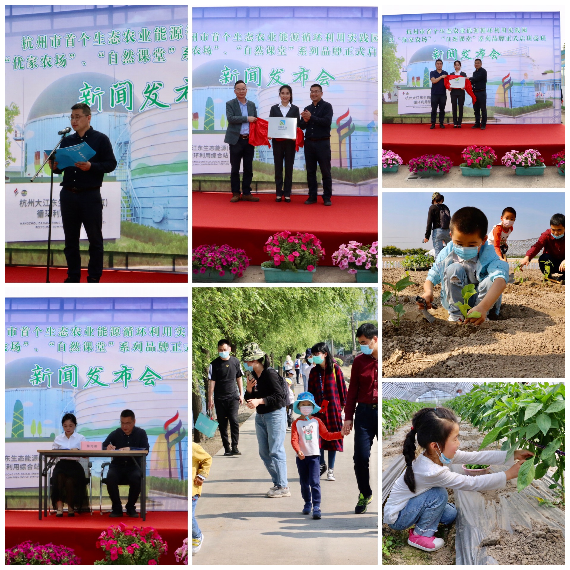 发布会由东部联合支部副书记、大江东能源公司副总经理方辉主持,首先由大江东能源公司总经理高良作“杭州市首个生态能源循环利用实践园暨“优家农场”和“自然课堂”系列品牌启用亮相”新闻发布;接着为“优家农场”、“自然课堂”品牌启用揭牌,并正式推出“认养一块地、种植一亩园”活动,最后与“钱塘新区小记者团”签订战略合作协议,成为了此次认养活动的首位用户。活动跟随直播镜头,全程助推园区即将推出的各类活动计划,同时现场家长们气氛活跃,带着小孩在田间地头体验蔬菜种植,亲手挖沟、种苗、浇水...,另一边家长带着小孩感受蔬菜采摘之类,线上线下气氛热烈;通过此次活动为我们的“生态农业种植和能源循环利用”作了很好很广泛的宣传。接下来,公司将以“优家农场”和“自然课堂”为品牌载体,打造杭州市中小学生课外实践基地,做绿色环保的“小卫士”,为我们的蓝天白云、青山绿水竭尽所能,为我们的安全、美好倾注全部。