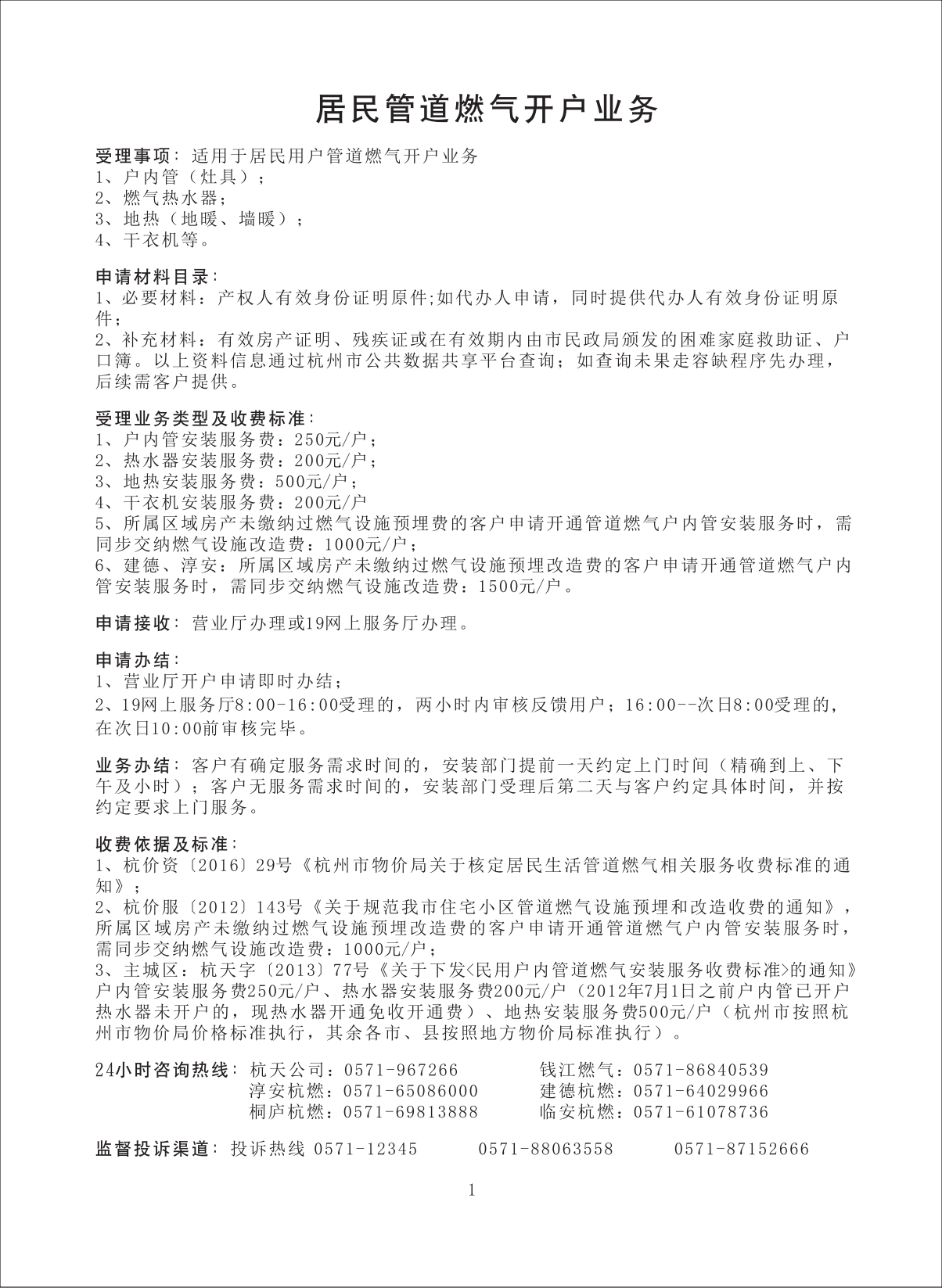 居民用户管道燃气开户业务 |