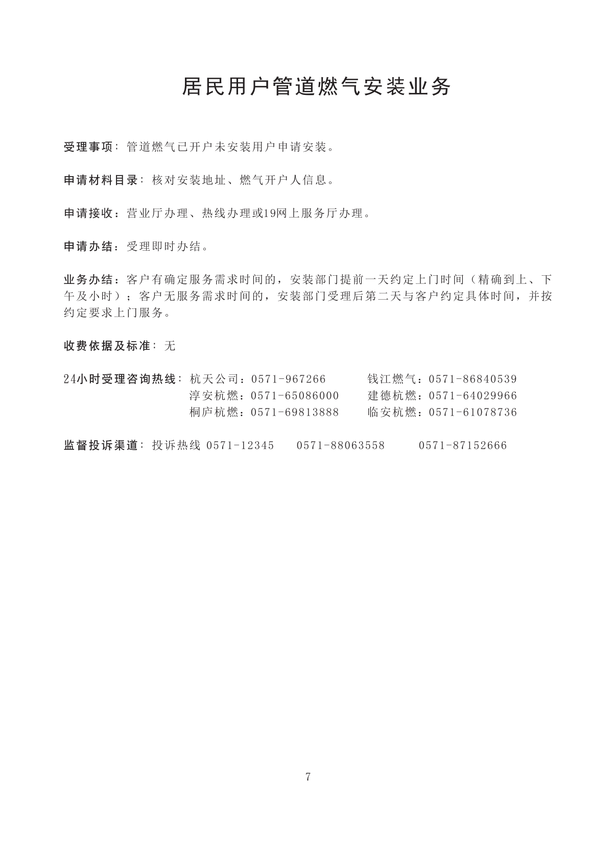 居民用户管道燃气安装业务 |
