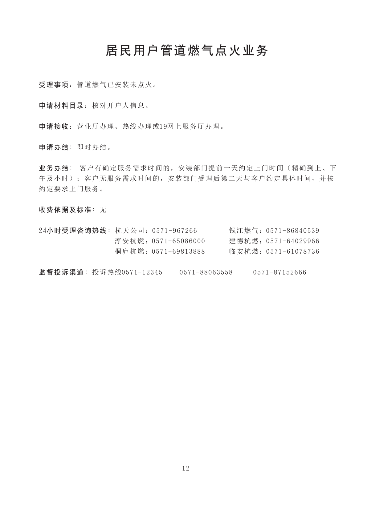 居民用户管道燃气点火业务 |