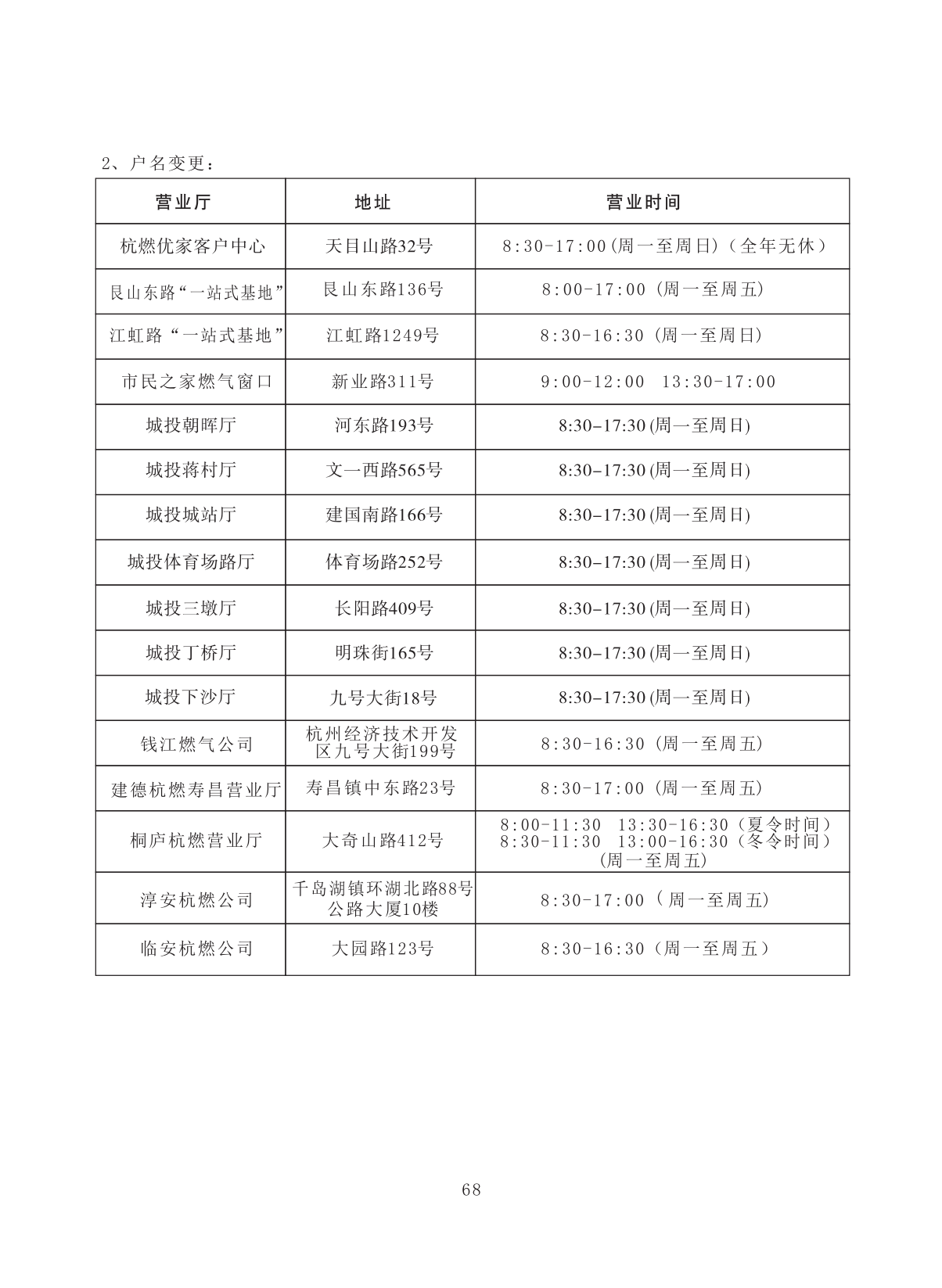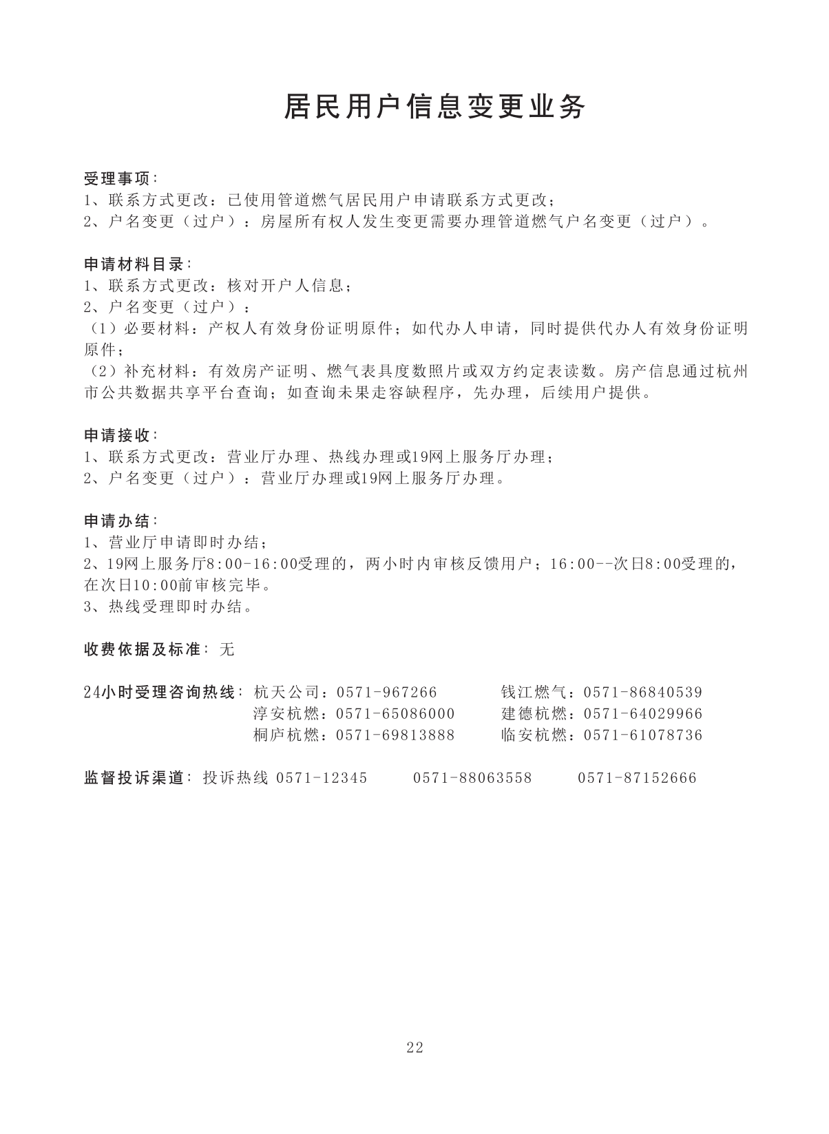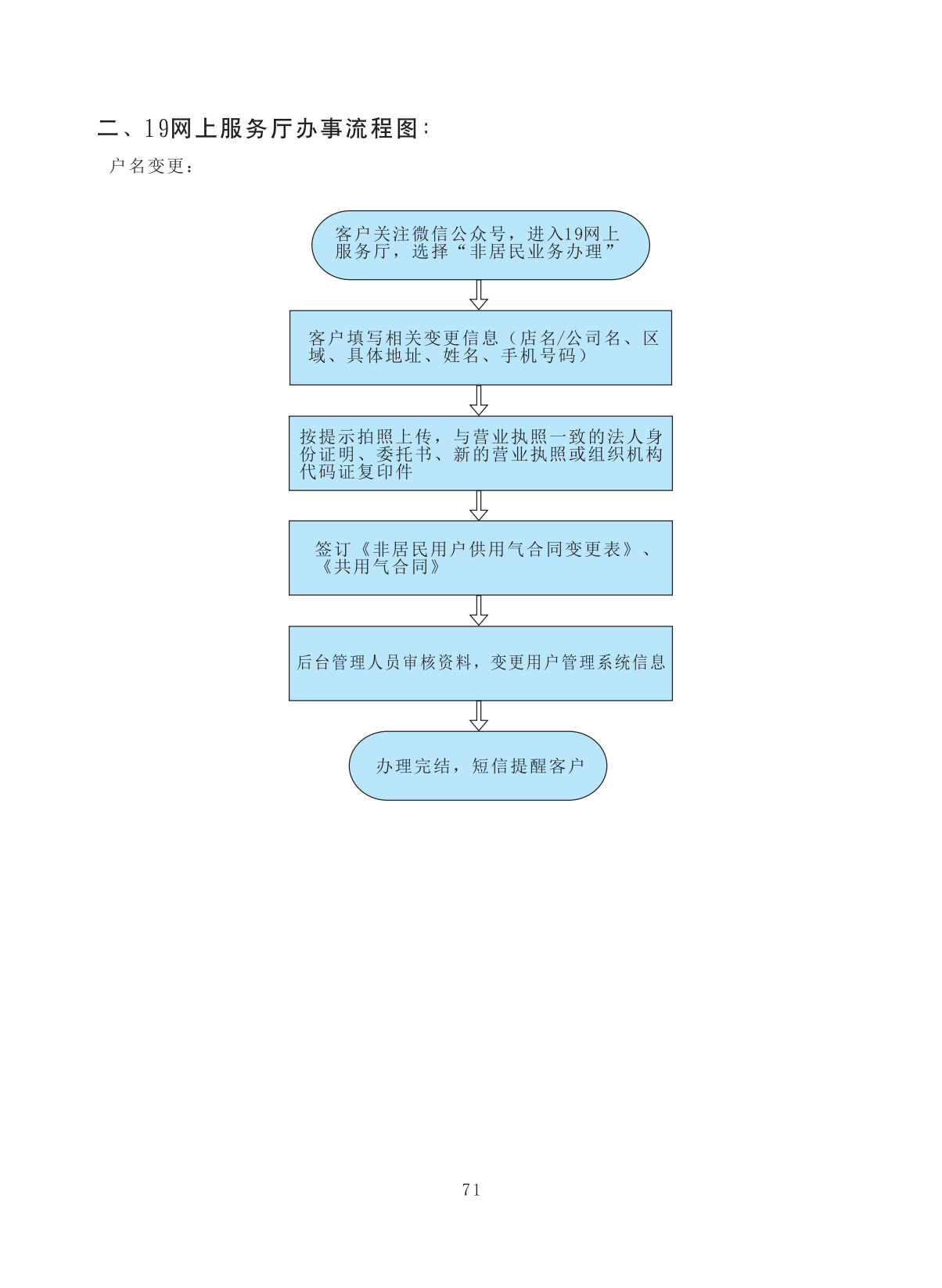 非居民用户管道燃气信息变更业务 |