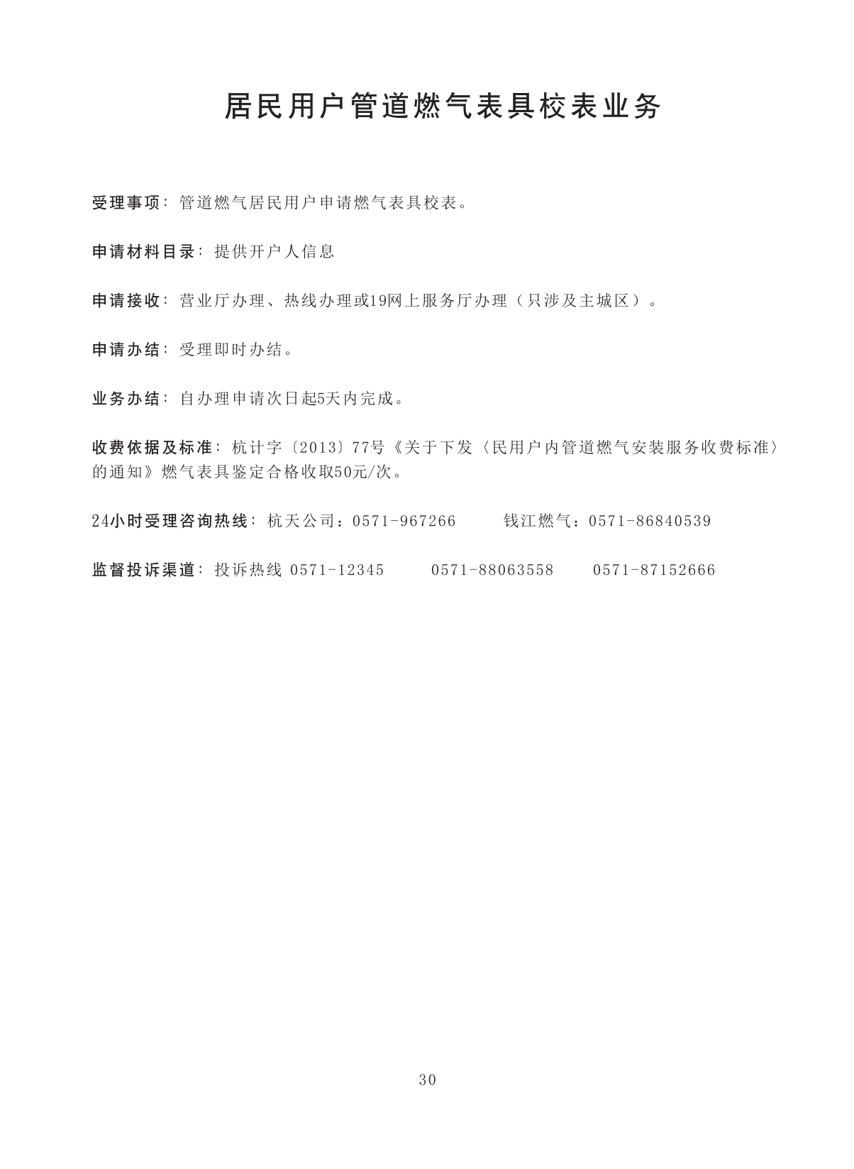 居民用户管道燃气表具校表业务 |