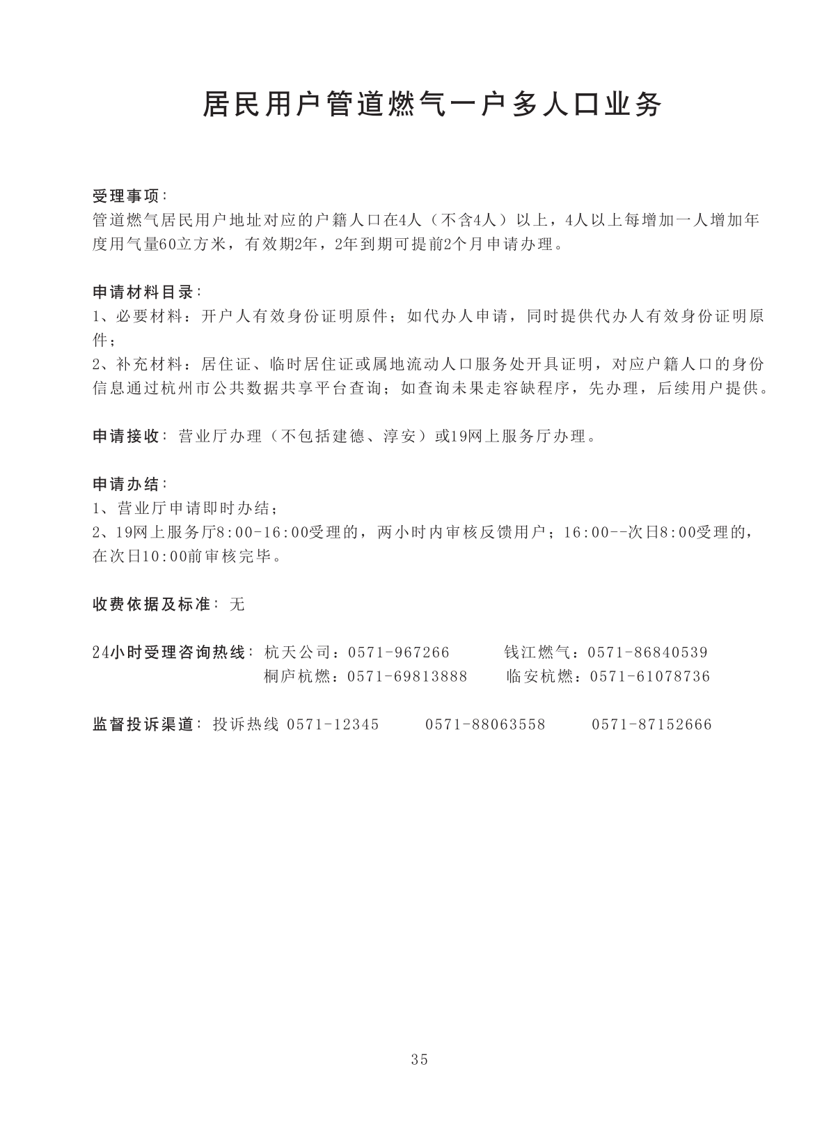 居民用户管道燃气一户多人口申请业务 |