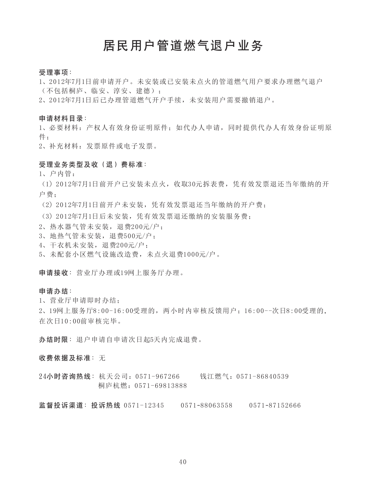 居民用户管道燃气退户业务 |
