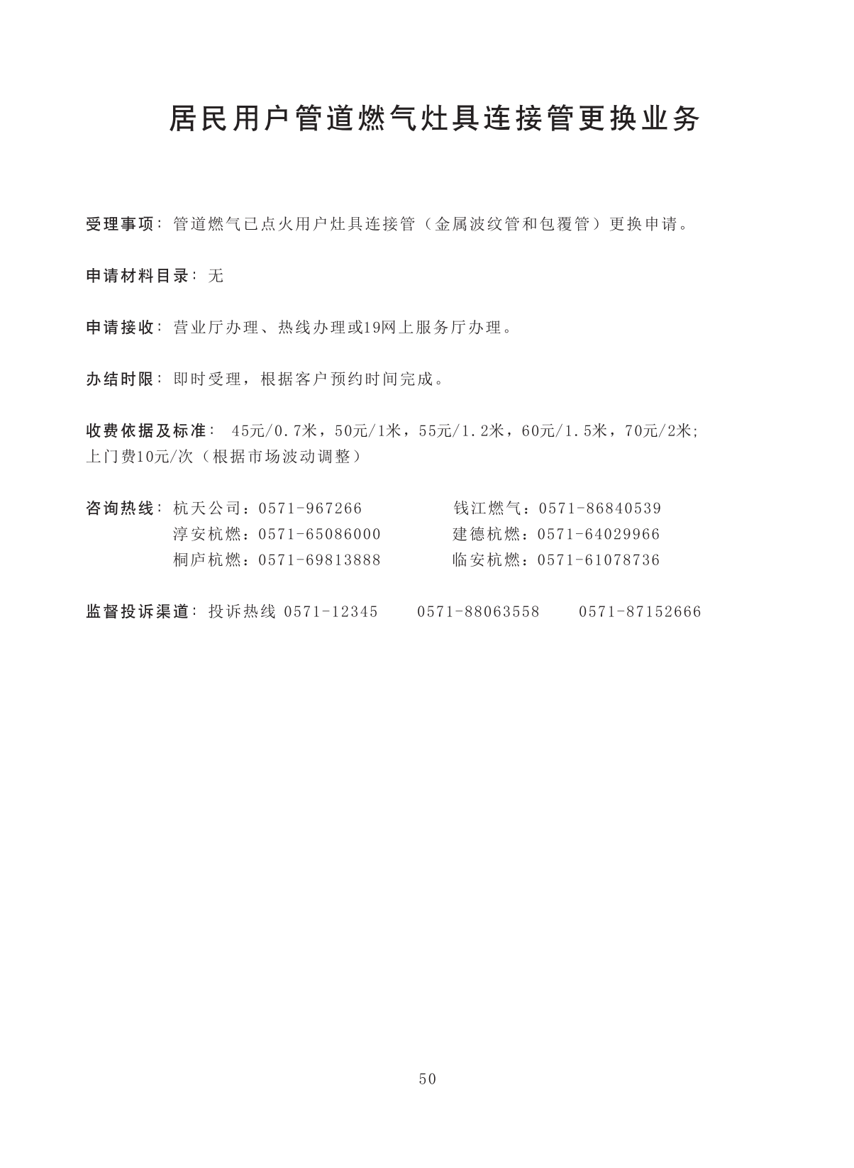 居民用户管道燃气灶具连接管更换业务 |