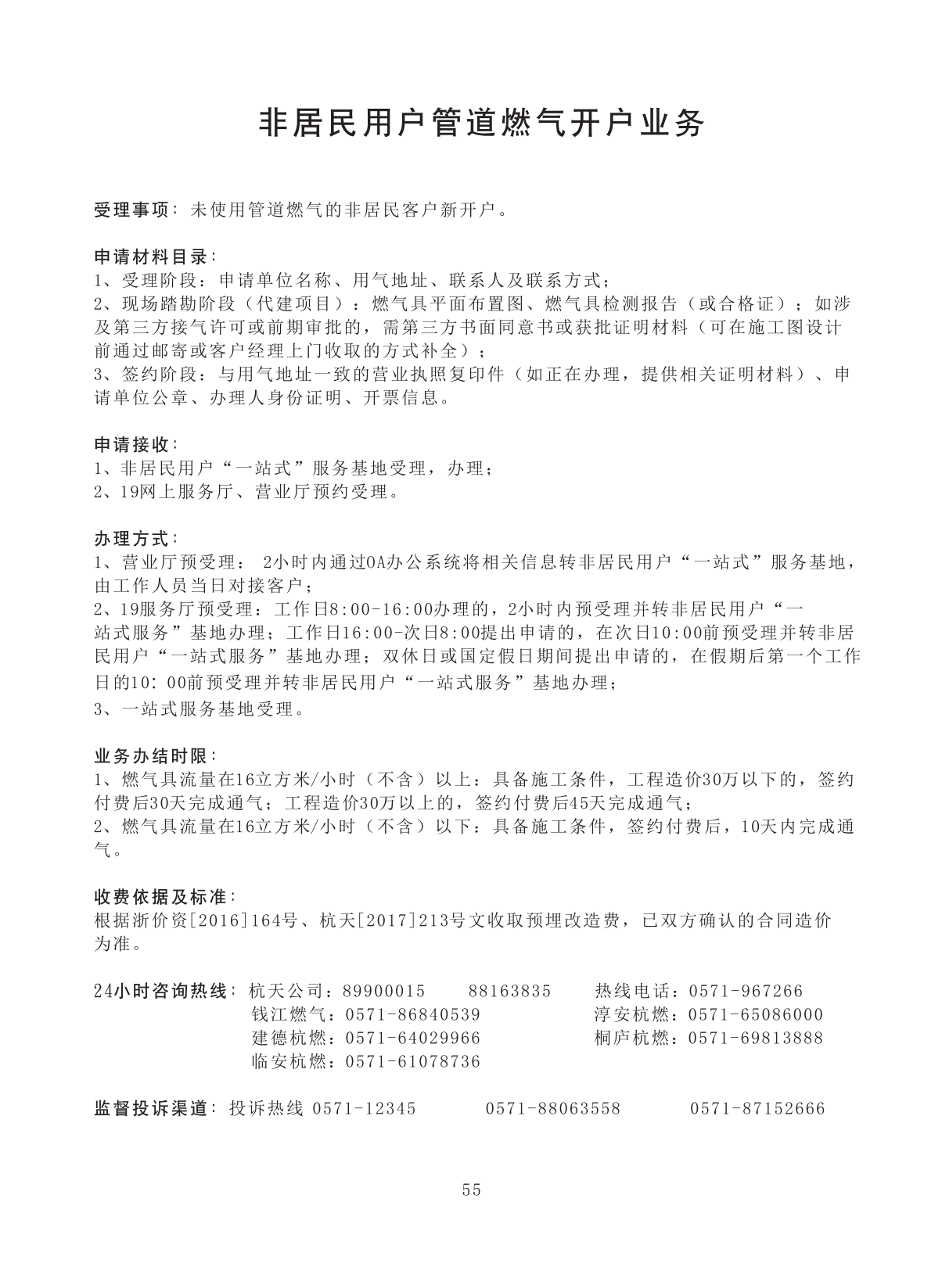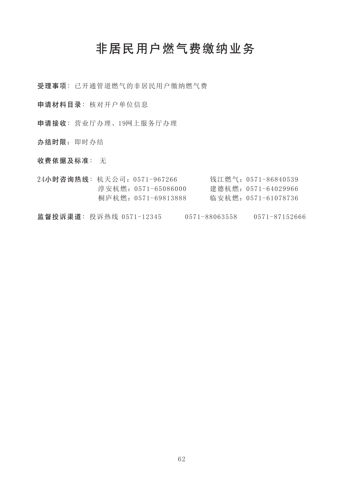 非居民用户管道燃气开户业务 |