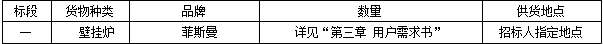 2.1 招标范围:目前房产项目需要的菲斯曼壁挂炉及安装服务,具体详见“第三章 用户需求书”。