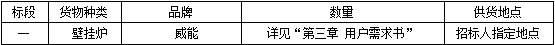 2.1 招标范围:目前零售市场、房产项目需要的威能壁挂炉及安装服务,具体详见“第三章 用户需求书”。