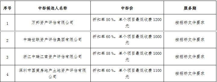 电竞博彩网 2023-2024年度房产、土地资产评估服务供应商库中标候选人公示