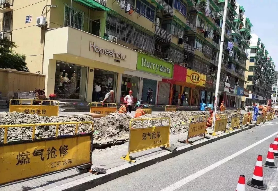 安全防护栏上“燃气抢修”4个字正述说着这里的一切……